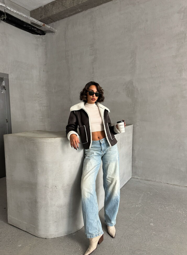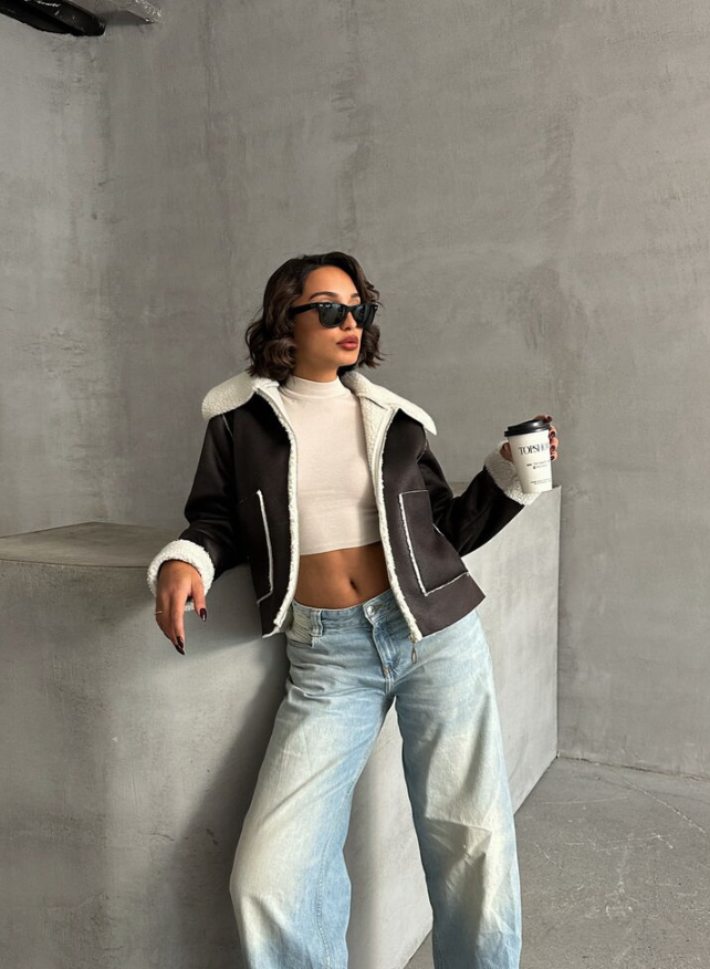 Avec sa doublure douce effet fourrure, ses finitions contrastées et sa coupe légèrement oversize, cette veste devient instantanément un indispensable de ta garde-robe.