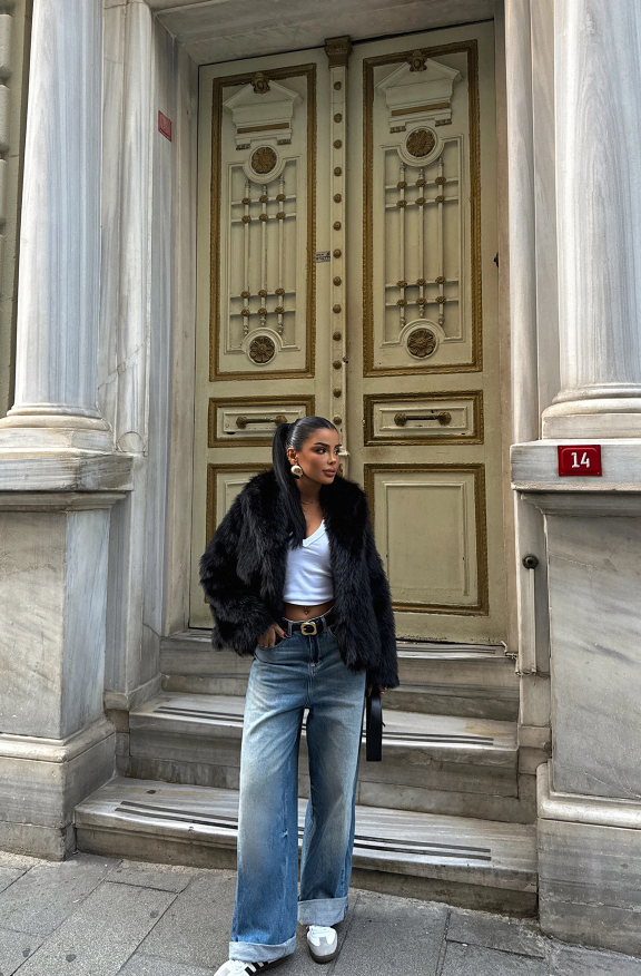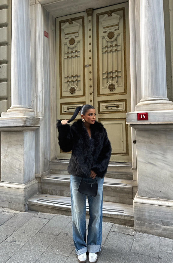 Cette veste en fourrure synthétique couleur taupe séduit par son aspect luxueux et son volume maîtrisé. Fabriquée en Turquie à partir d’un mélange de 95 % polyester et 5 % élasthanne, elle offre une texture douce, dense et agréable au toucher, tout en garantissant un excellent confort.